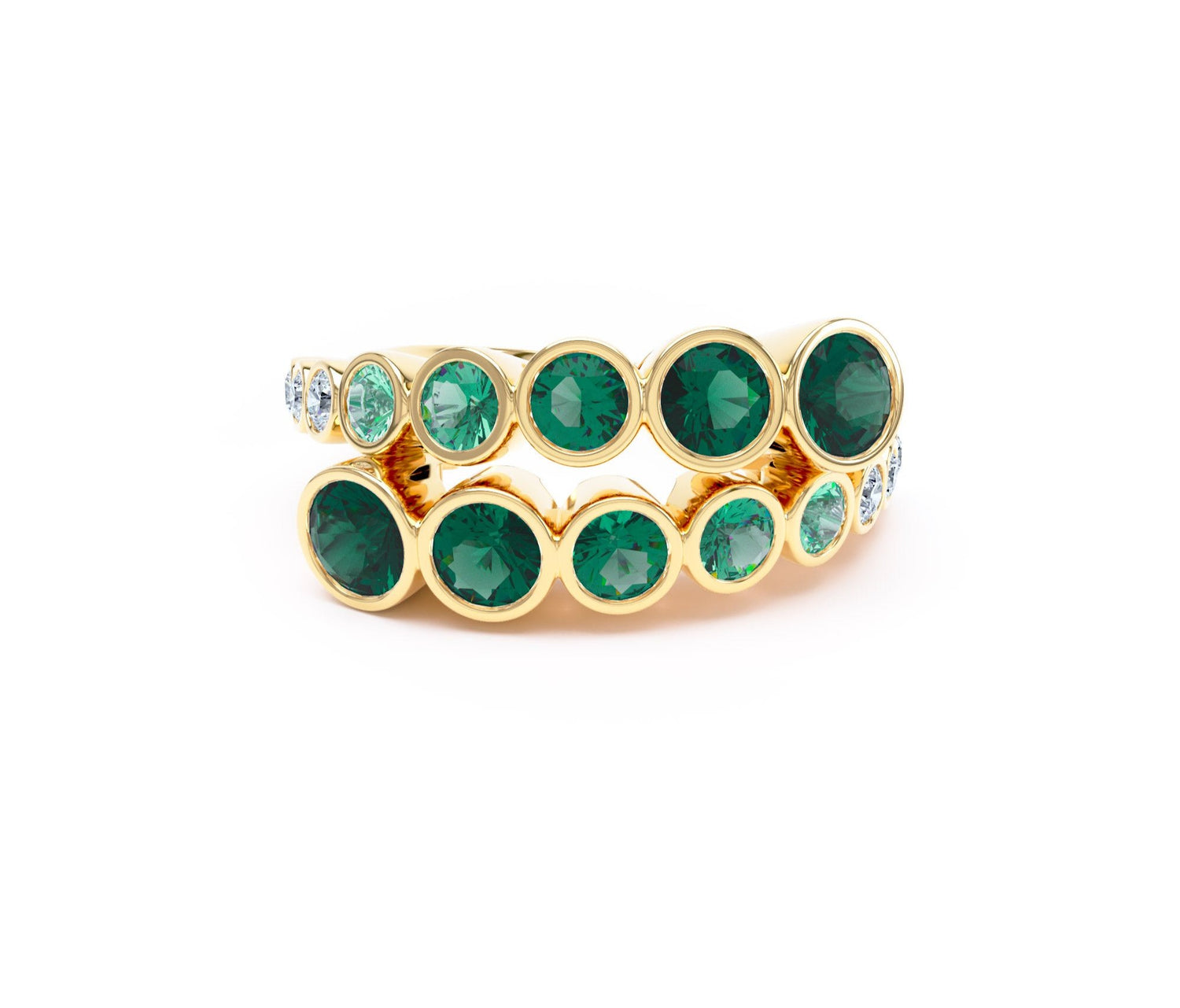 1.50cts of Round Emeralds & Brilliant Cut Diamonds, bezel-set into our Handmade Cocktail Ring Design.
