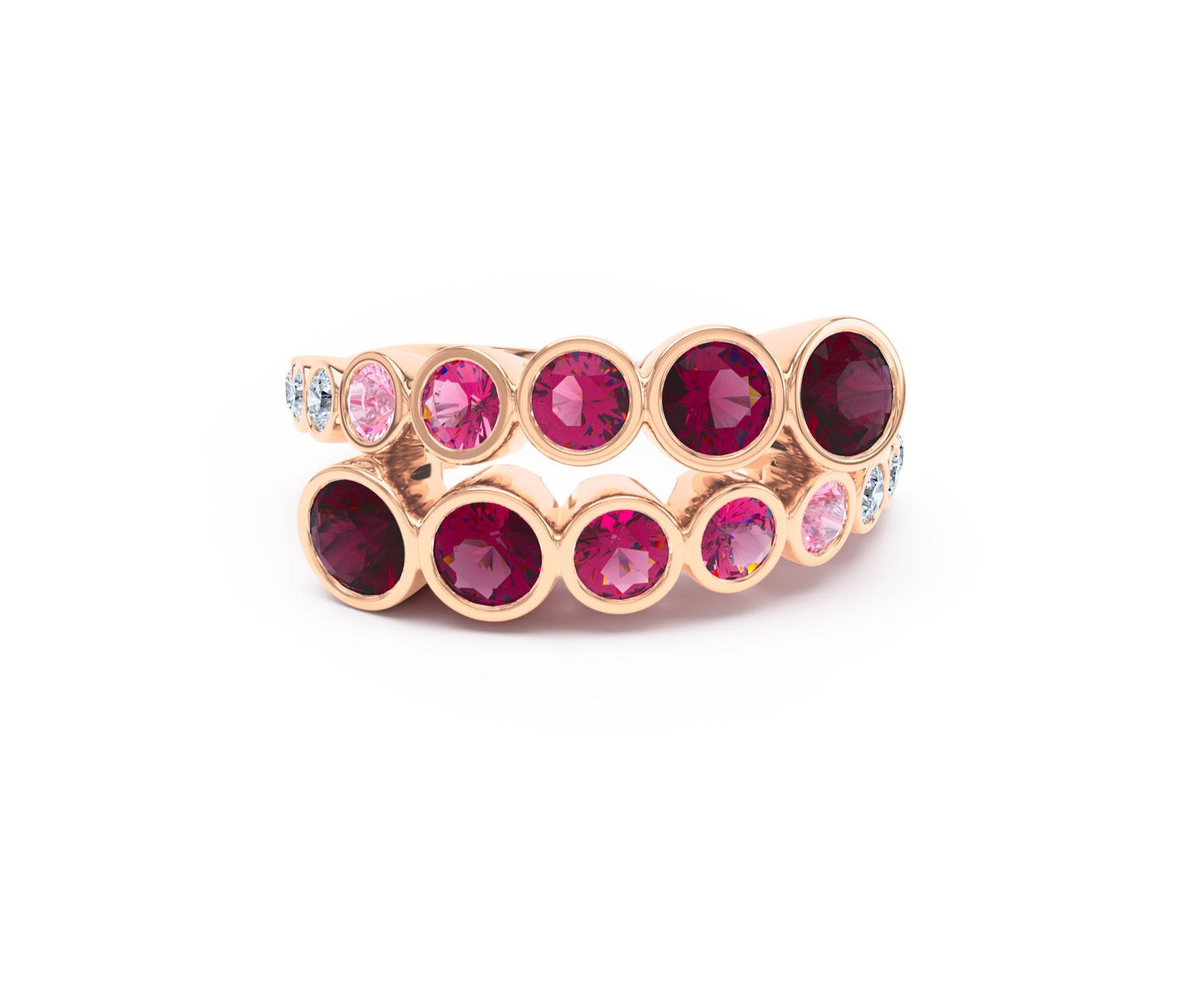1.50cts of Round Sapphires & Brilliant Cut Diamonds, bezel-set into our Handmade Cocktail Ring Design.
